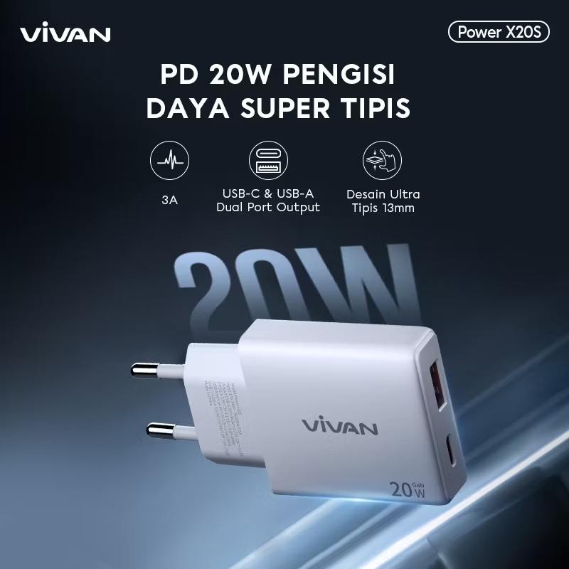 Vivan Adapter Charger Power X20S Fast Charging 20W