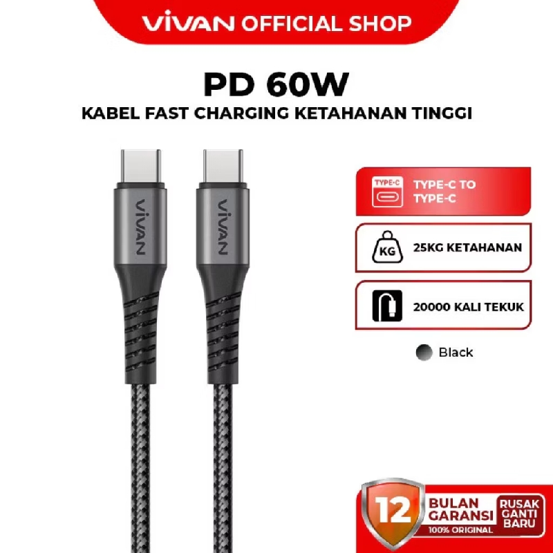 Kabel Data Vivan VXCC120S Fast Charging 60W Type C To Type C