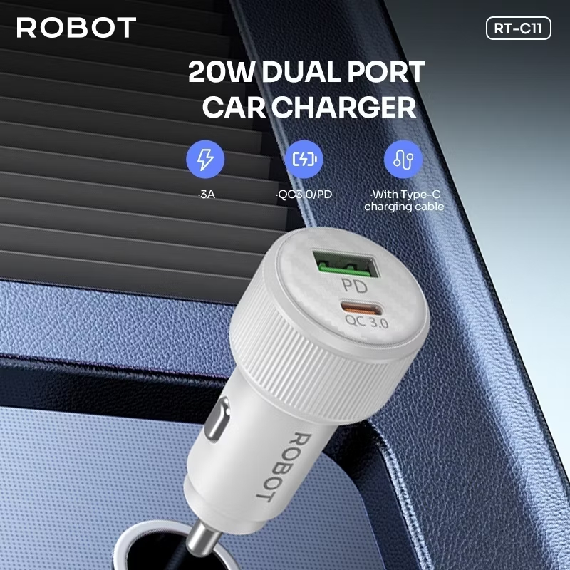 Car Charger ROBOT RT-C11 2 Port USB & Type C