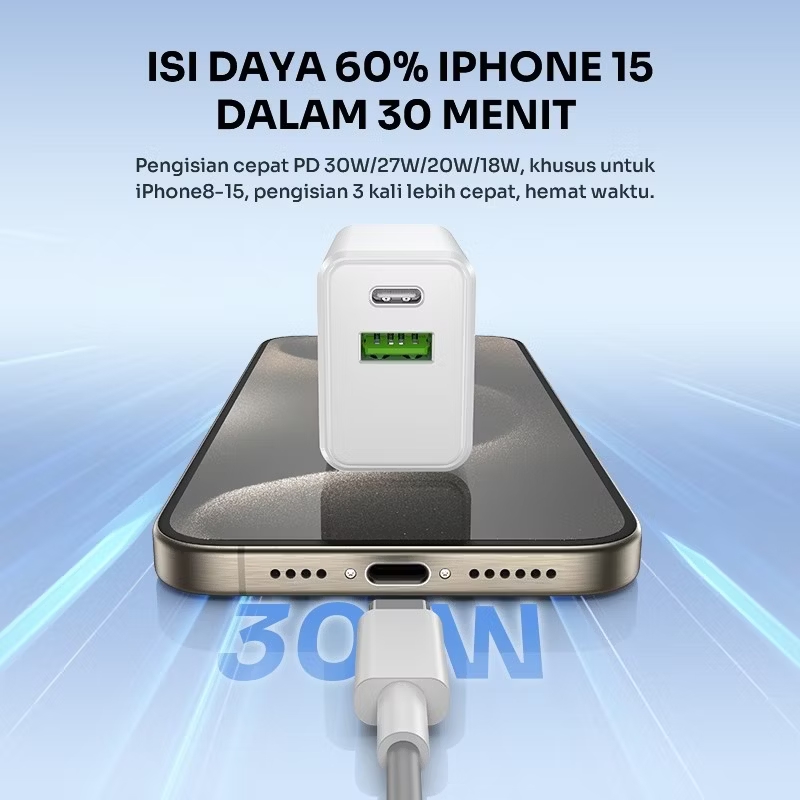 2. Mengisi daya 60% untuk iPhone dalam waktu 30 menit dan dapat mengisi 2 perangkat secara bersamaan