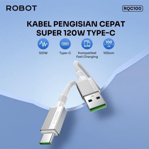 Spesifikasi: Brand : ROBOT Item Code : RQC100 Output : 120W Interface : USB To Type-C Length : 1 Meter Color : Black / White Keunggulan: 1. Pengisian Super Cepat 120W Mengisi Penuh Xiaomi 13 Pro (4820mAh ) Dalam 19 Menit, Kompatible dengan pengisian cepat 120W/100W/67W/65W/27W Untuk Xiaomi & Redmi 2. Kompatibel Dengan Pengirisan Cepat Semua Seri iPhone 15 Mendukung Pengisian Cepat Berdaya Rendah 7.5W / 15W Untuk Semua Model iPhone 15, Juga Dapat mengisi daya ipad /Mac /Airpods 3. Kompatibel 99% Fast Charging Vivo : Flash Charger Oppo/Realme : Super VOOC/VOOC Samsung / AFC Xiaomi : QC Huawei : SFC/FCP 4. Braided Design Kuat dan Tahan Lama Kabel dengan Anyaman Kepadatan Tinggi nyaman dipegang , tidak mudah kusut m dan tahan tarikan tidak perlu mengganti kabel 5. Konektor yang diperkuat tahan tekuk Konektor diperkuat dengan paduan berbetuk Strip Sikat , Tahan Tekuk dan tidak mudah retak