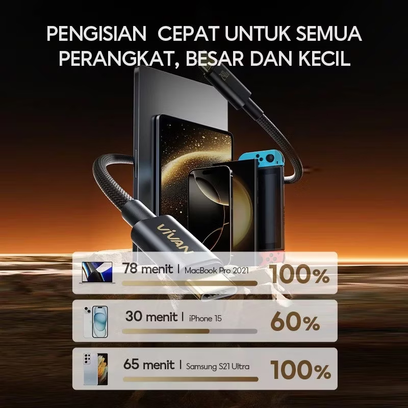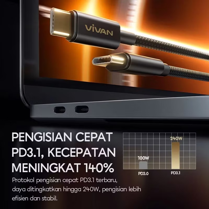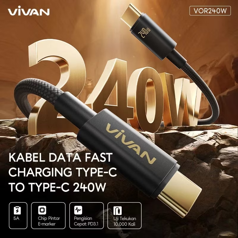 Kabel Data Vivan VOR240W For C to C 240W Fast Charging 120CM