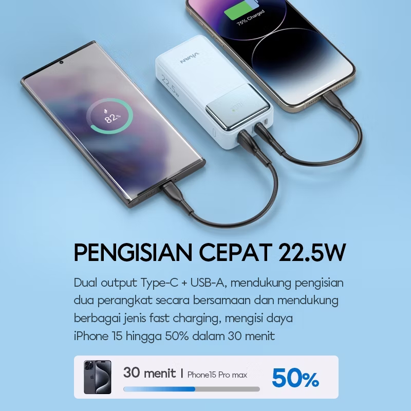 3. 22.5W fast charging output, supports fast charging of a variety of mobile phones, and has stronger compatibility