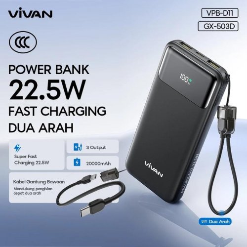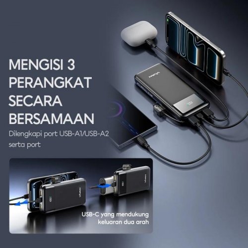 • Kapasitas Baterai: 10,000mAh • Keluaran Daya: 22.5W Fast Charging • Jumlah Output: 3 Output USB (USB-A1, USB-A2, USB-C) • Kabel: Kabel Type-C yang mendukung PD 20W • Kompatibilitas: Cocok untuk semua perangkat smartphone • Material: Cangkang Anti Api dengan tingkat V0