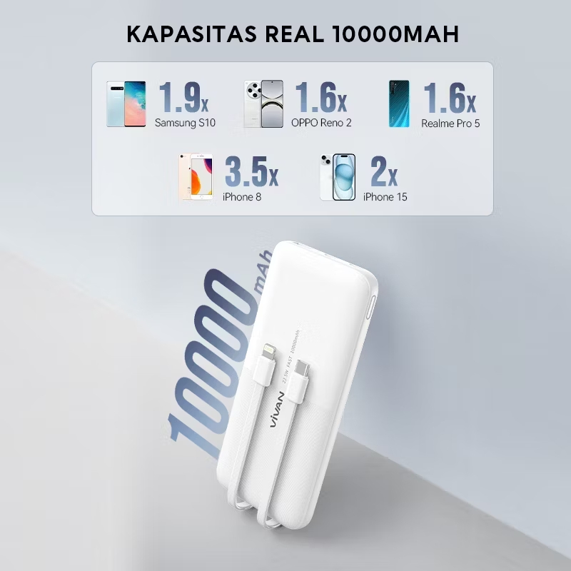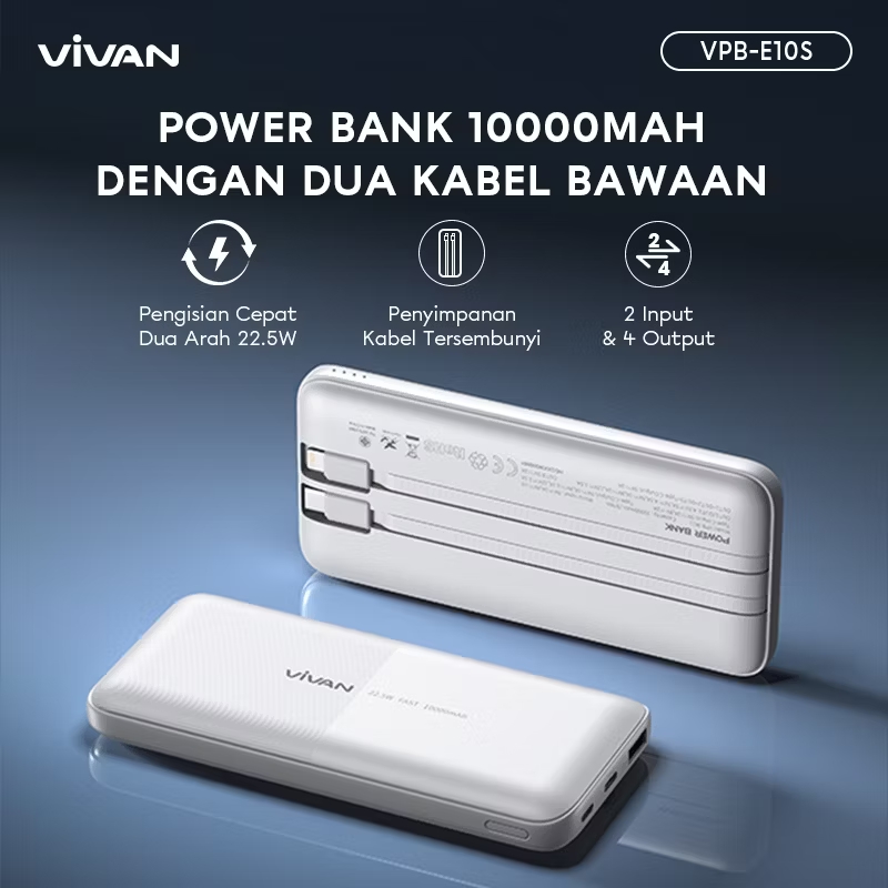 Power Bank Vivan VPB-E10S 10000mAh Fast Charging 2 Input & 4 Output