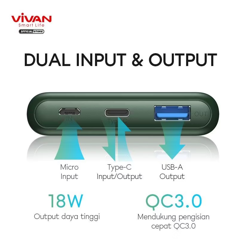2. Dual input Type C dan Micro USB, untuk mudahkan proses pengisian daya powerbank.
